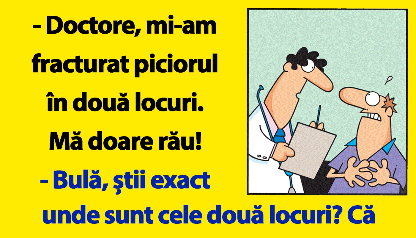 – Doctore, mi-am fracturat piciorul în două locuri. Mă doare rău!