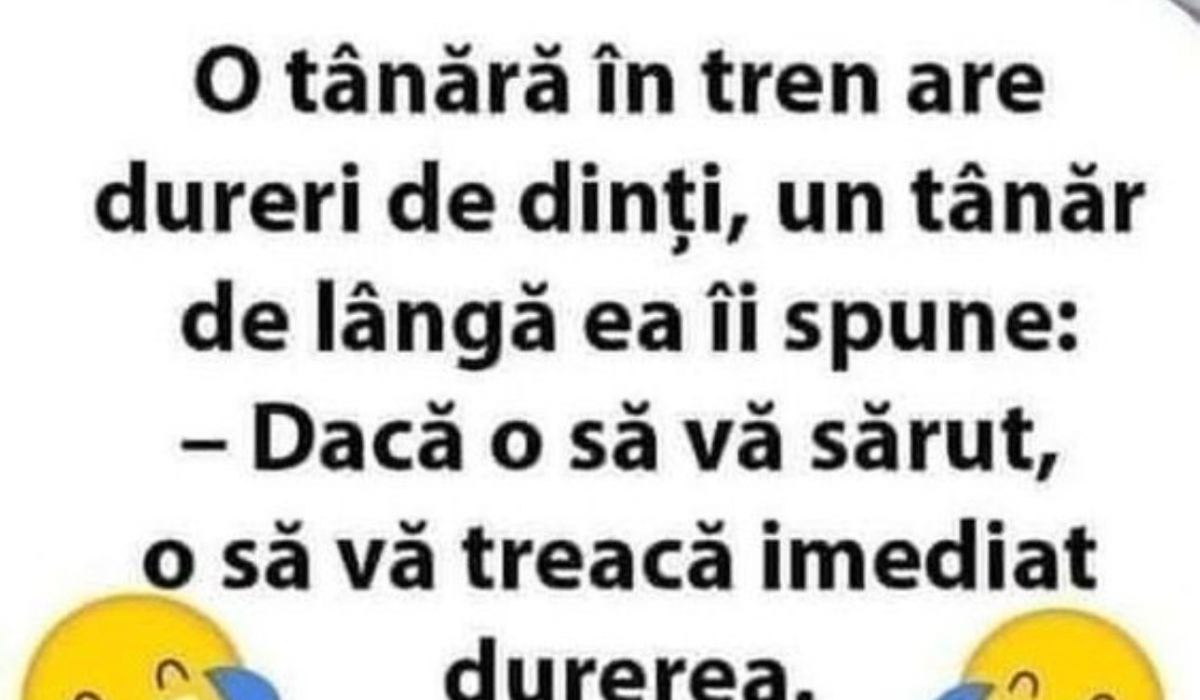 „O tânără în tren are dureri de dinți, un tânăr de lângă ea îi spune: