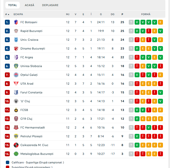 Cu 25 de puncte din 12 meciuri, 7 victorii, 4 egaluri și o singură înfrângere, formația moldoveană conduce clasamentul alături de Rapid București, demonstrând că performanța poate fi atinsă și cu inteligență, strategie și unitate, nu doar cu bani.